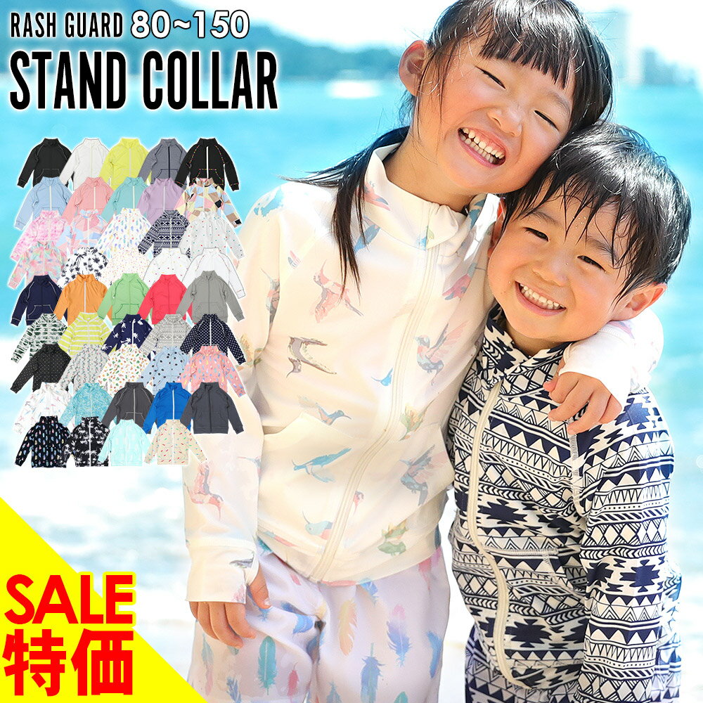 【アフターセール継続中】接触冷感 ラッシュガード キッズ ジップアップ 全40色 ラッシュジップ スタンドカラー 子供 UV98%カット UPF50+ ベビー 男の子 女の子 紫外線予防